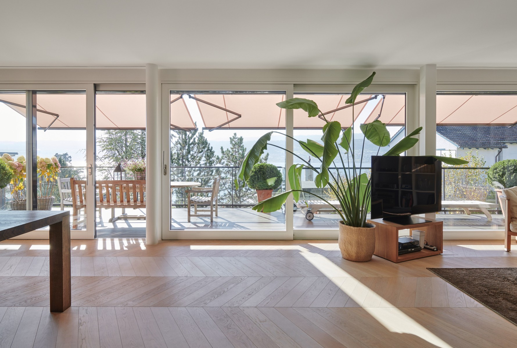 Dank schlanken und bis zu 3,3 m hohen Flügelprofilen mit Wärme- und Schalldämmung sowie Glasfronten von bis zu 300 kg Flügelgewicht bringt die Hebeschiebetür viel Licht und eine hohe Ästhetik in die Räume. Für eine maximale Optik sorgt zudem die Verglasung von aussen, wodurch im Innern keine Glasleisten sichtbar sind.
