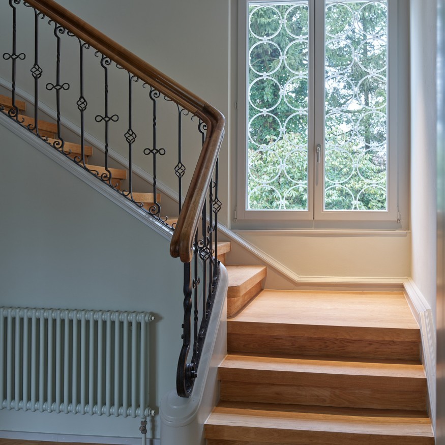 In Zollikon wird ein Einfamilienhaus mit viel Sorgfalt renoviert. Prägende Elemente aus der Entstehungszeit wie das grosszügige Treppenhaus und die ursprüngliche Raumstruktur bleiben erhalten und gewinnen durch die Fenstersanierung mit dem Kläusler Holz Metall Fenster L zusätzlich an Licht, Weite und Offenheit.