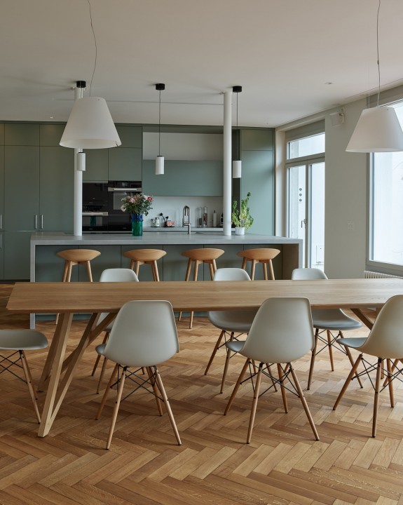 Beim Umbau des Einfamilienhauses in Zollikon zeigen die Holz Metall Fenster L von Kläusler ihre Stärken. Sie erfüllen die Anforderungen an ein qualitativ hochwertiges und energieeffizientes Fenster und lassen sich serienmässig auf Mass fertigen. So betonen die Holzrahmen die Architektur im Innern, während die äussere Aluminiumverkleidung zuverlässigen Schutz vor Witterungseinflüssen bietet. Dank der schlanken Flügelprofile gelangt viel Tageslicht in die Innenräume und die Vielfalt an Farben, Beschlägen und Griffen erlaubt Lösungen, die perfekt auf die individuellen Gegebenheiten abgestimmt sind.