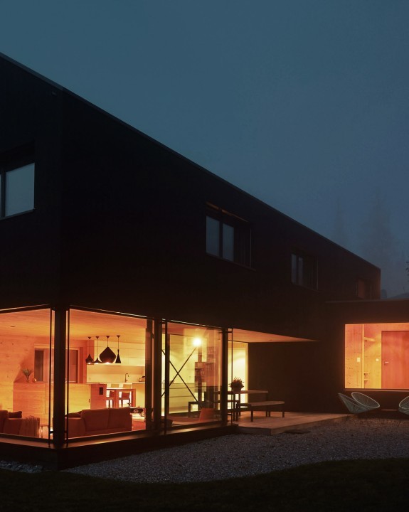 Grosszügige Fensterfronten im Erdgeschoss kombiniert mit einer warmen mit viel Holz gestalteten Innenarchitektur bestimmen bei diesem Einfamilienhaus den Fensterbau. Die Zürcher Fensterfabrik wählt für die Umsetzung der Anforderungen das beliebte Qualitätsfenster Kläusler Holz Metall Fenster L.