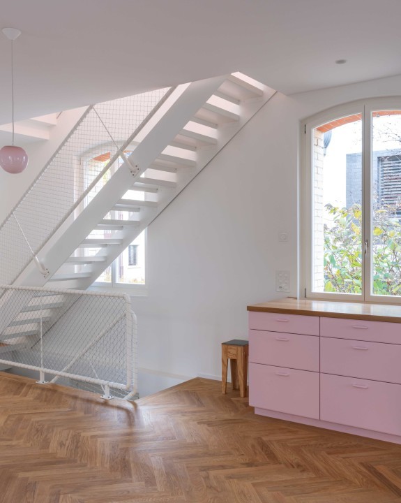 Das Kläusler Holz Metall Fenster A wurde so konstruiert, dass es in Design, Ausführung, Energieeffizienz und Unterhalt den unterschiedlichsten Ansprüchen gerecht wird. Dank der grosszügigen Glasflächen strömt viel Licht ins Haus, das vom weissen Anstrich von Fenstern und Wänden aufgenommen wird und die Räume optimal besonnt. Mir ihrer filigranen Optik und den formschönen Griffen fügen sich die Holz-Metall-Fenster der Zürcher Fensterfabrik harmonisch in die Innenarchitektur des liebevoll sanierten Gebäudes ein.